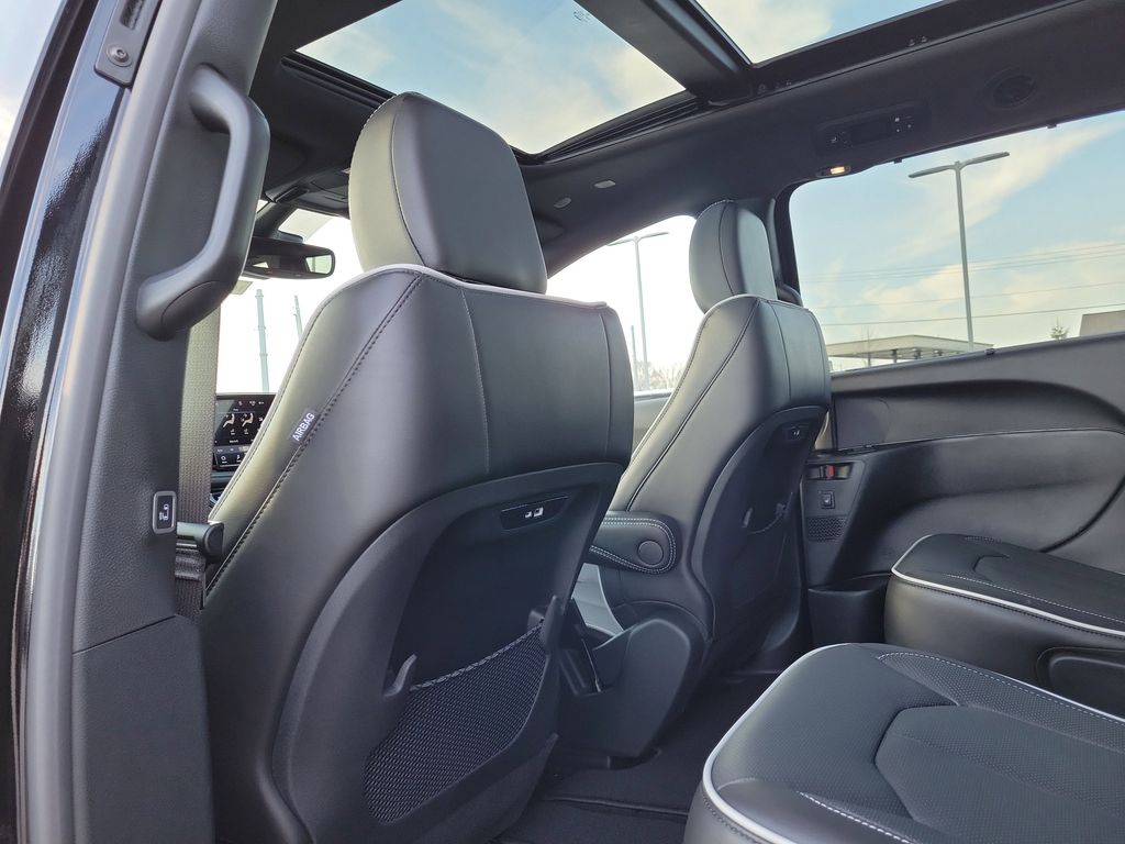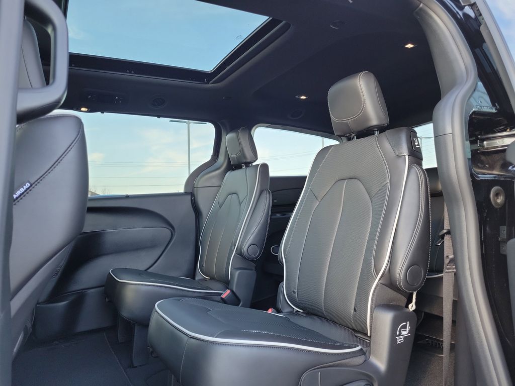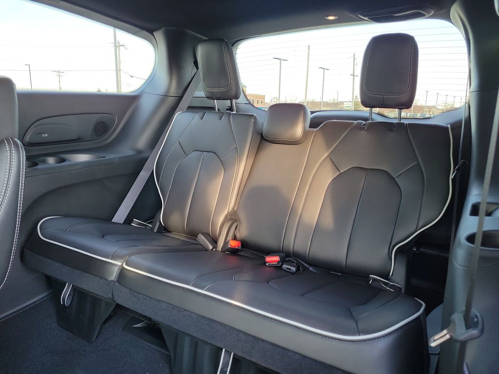 Slip into the luxurious Nappa Leather-trimmed interior and experience the ultimate in comfort and style. Heated and ventilated front seats, along with heated rear seats, ensure you and your passengers arrive refreshed and relaxed. The split-folding third-row seats provide versatile cargo space, while the Black Stow 'N Place Roof Rack adds to the Pacifica's adaptability.