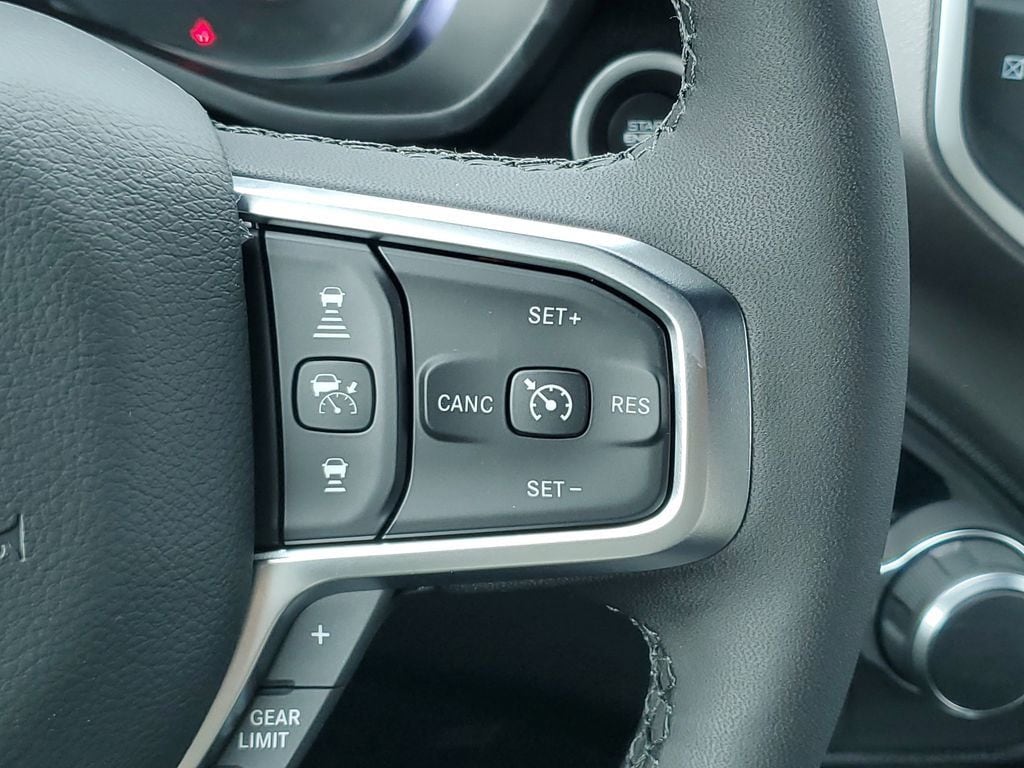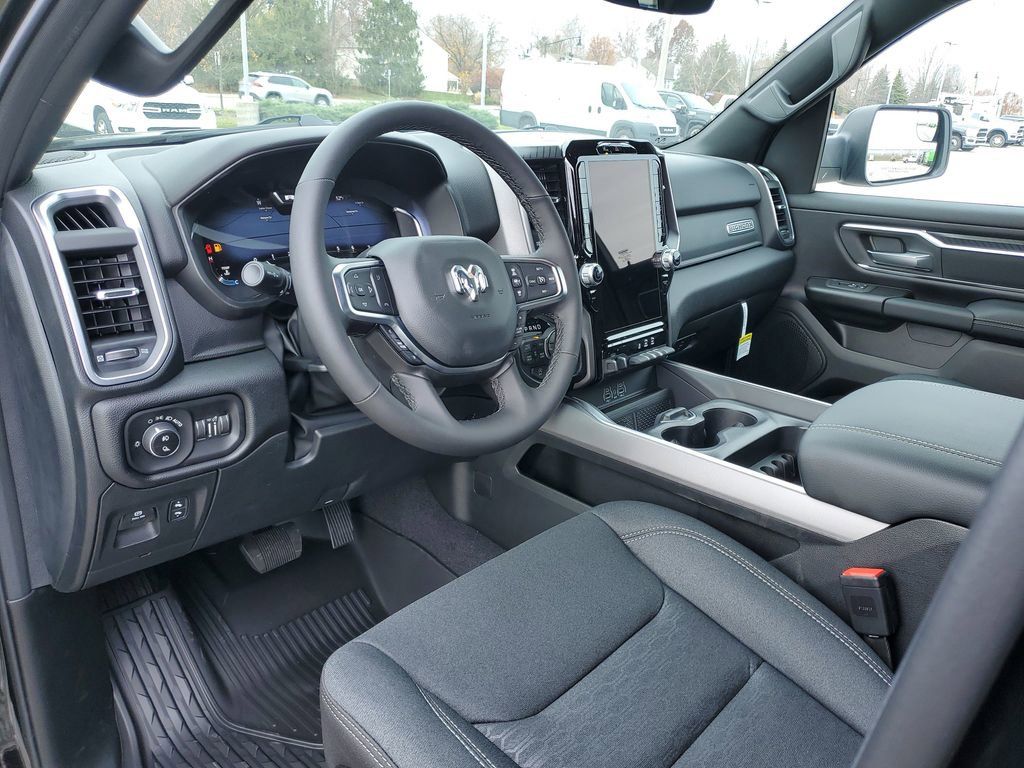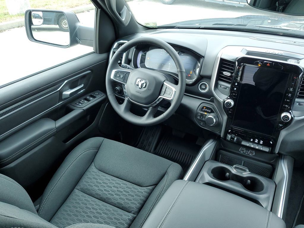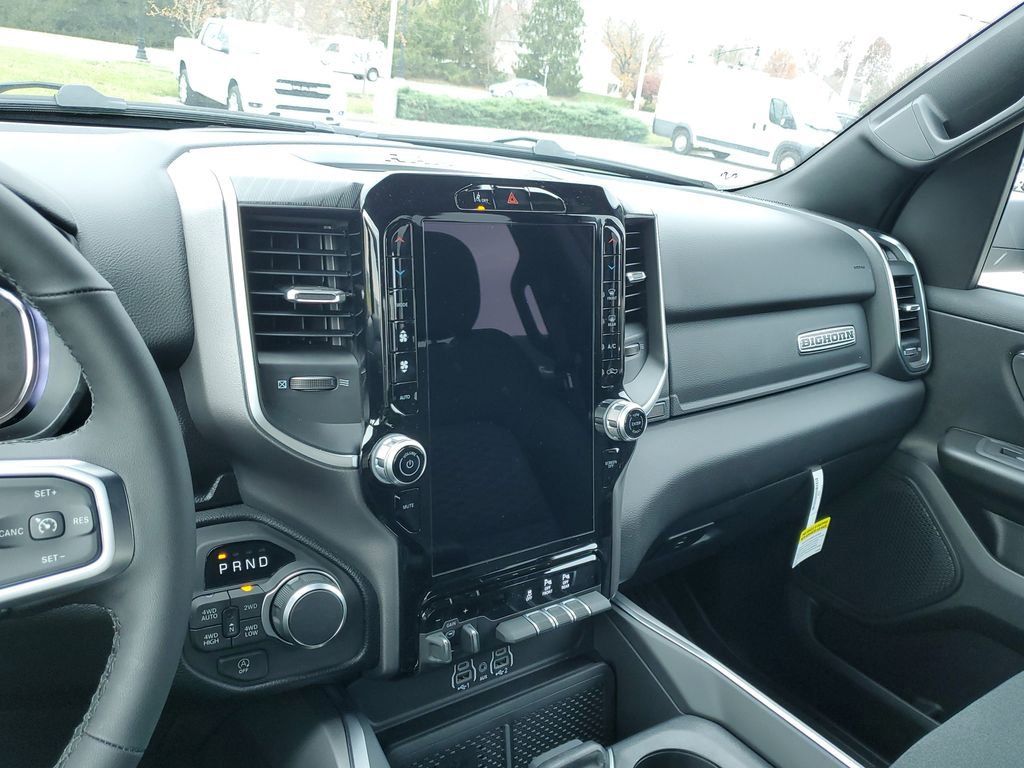 The exterior of this Ram 1500 exudes a bold, commanding presence with its sleek Black paint, body-color accents, and striking 20-inch aluminum wheels. Step inside the cabin and you'll be greeted by a premium, well-appointed interior that combines style and functionality. The 12-inch touchscreen display, heated steering wheel, and premium audio system create an unparalleled driving experience.