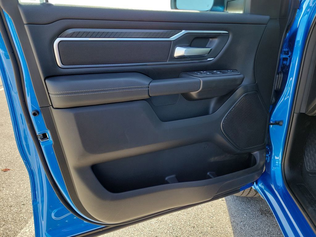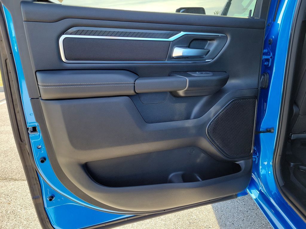 Elevating the driving experience, the Ram 1500 Big Horn/Lone Star boasts a stunning Hydro Blue Pearlcoat exterior, complemented by a host of premium styling cues. The bold, muscular design is further accentuated by the Night Edition package, which includes black exterior accents and 20-inch painted wheels, creating a striking and confident presence on the road.