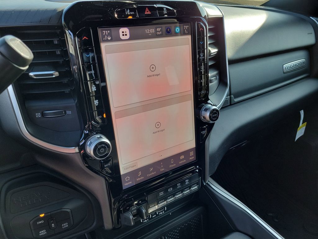 The cabin of the 2026 Ram 3500 Big Horn is a haven of comfort and convenience, with dual-zone climate control, a 12-inch touchscreen display, and a premium audio system with 9 Alpine speakers and a subwoofer. Stay connected and entertained on the go with features like Apple CarPlay, Android Auto, and a 4G LTE Wi-Fi hotspot.