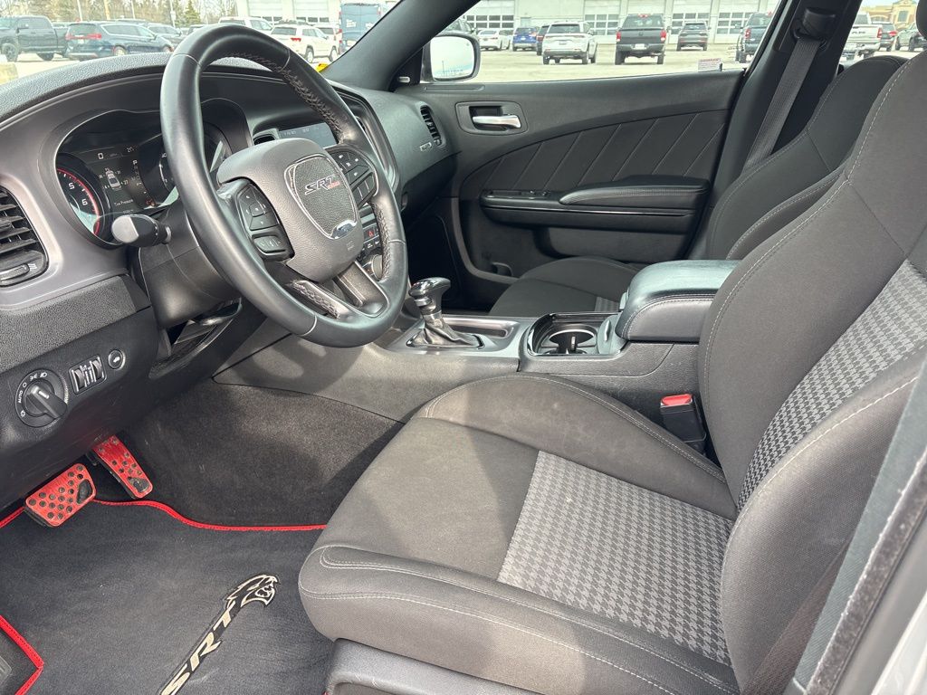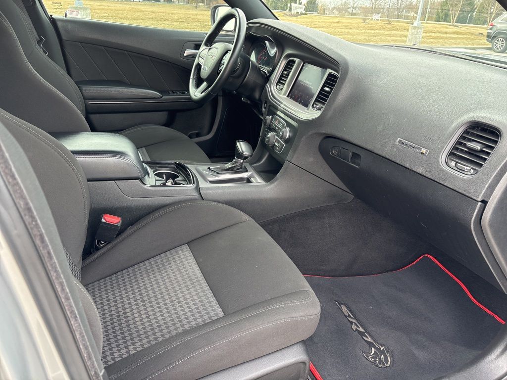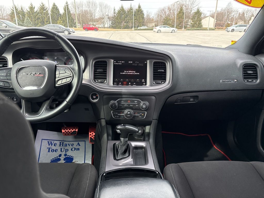 CARFAX One-Owner. Black Cloth, 1-Yr SiriusXM Guardian Trial, 2-Piece Shark Fin Antenna, 4-Wheel Disc Brakes, 4G LTE Wi-Fi Hot Spot, 6 Speakers, 8.4" Touchscreen Display, ABS brakes, Air Conditioning, Alloy wheels, AM/FM radio: SiriusXM, Anti-whiplash front head restraints, Apple CarPlay, Apple CarPlay/Android Auto, Auto-dimming Rear-View mirror, Automatic temperature control, Black 1-Piece Performance Spoiler, Black Badge, Black Dodge Grille Badge, Blacktop Package, Brake assist, Bumpers: body-color, Cloth Performance Seats, Compass, Delay-off headlights, Driver door bin, Driver vanity mirror, Dual front impact airbags, Dual front side impact airbags, Electronic Stability Control, Emergency communication system: SiriusXM Guardian, For Details, Visit DriveUconnect.com, Four wheel independent suspension, Front anti-roll bar, Front Bucket Seats, Front Center Armrest, Front dual zone A/C, Front reading lights, Fully automatic headlights, Garage door transmitter: HomeLink, Gloss Black I/P Cluster Trim Rings, Google Android Auto, GPS Antenna Input, HD Radio, Heated door mirrors, Illuminated entry, Integrated Center Stack Radio, Integrated Voice Command w/Bluetooth, Knee airbag, Leather Shift Knob, Low tire pressure warning, Media Hub (2 USB, AUX), Occupant sensing airbag, Outside temperature display, Overhead airbag, Overhead console, Panic alarm, ParkView Rear Back-Up Camera, Passenger door bin, Passenger vanity mirror, Power 2-Way Driver Lumbar Adjust, Power 8-Way Driver Seat, Power door mirrors, Power driver seat, Power steering, Power windows, Quick Order Package 2EH, Radio: Uconnect 4C w/8.4" Display, Rear anti-roll bar, Rear Armrest w/Cupholder Seat, Rear reading lights, Rear seat center armrest, Rear window defroster, Remote keyless entry, Rhombi 2-Pc Wheel Center Cap, Satin Black Charger Decklid Badge, Satin Black Dodge Tail Lamp Badge, Speed control, Speed-Sensitive Wipers, Split folding rear seat, Spoiler, Steering wheel mounted audio controls, Tachometer, Telescoping steering wheel, Tilt steering wheel, Traction control, Trip computer, USB Host Flip, Variably intermittent wipers, Wheels: 20" x 8" Black Noise Painted, Wheels: 20" x 8" Satin Carbon Painted, Black Cloth.