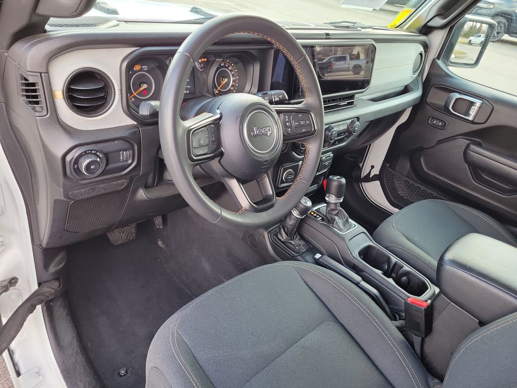 The interior of this Wrangler Sport S is designed with your comfort and convenience in mind. Enjoy the premium wrapped steering wheel, the intuitive Uconnect 5 infotainment system with a 12.3-inch display, and the advanced safety features like Forward Collision Warning Plus and Enhanced Adaptive Cruise Control.