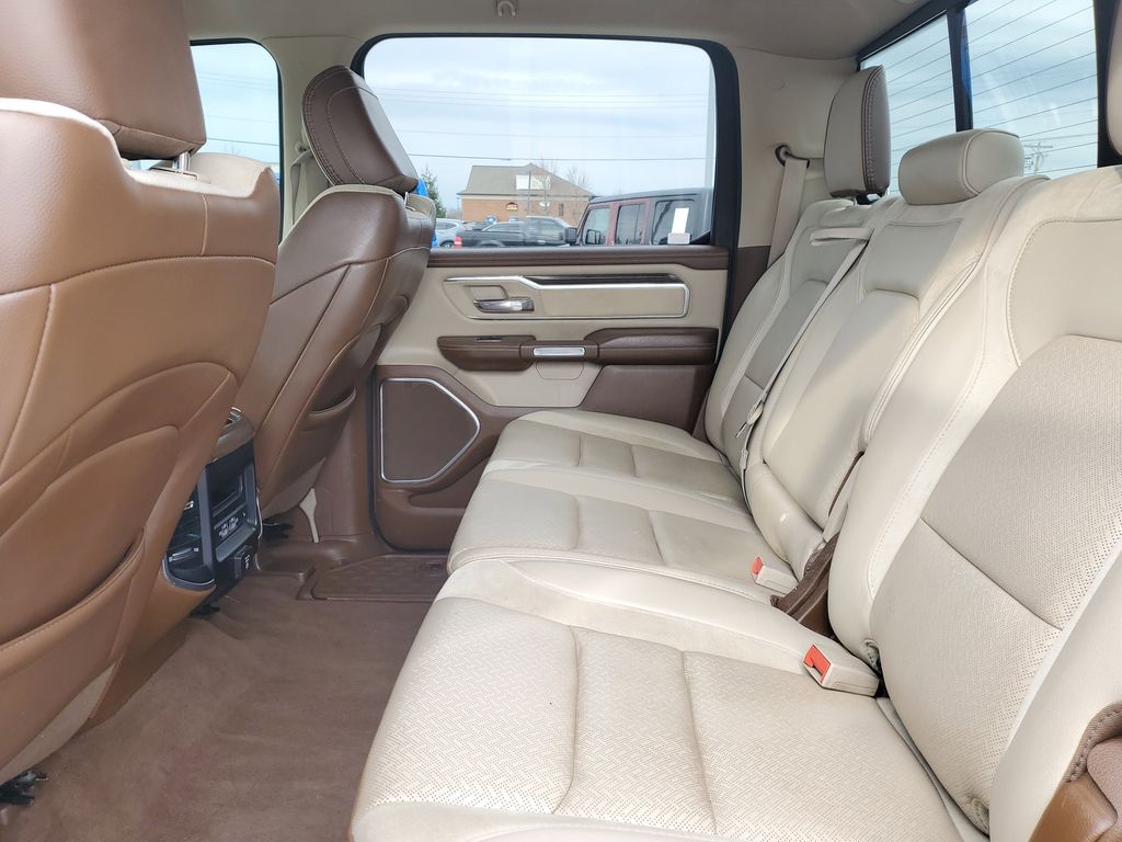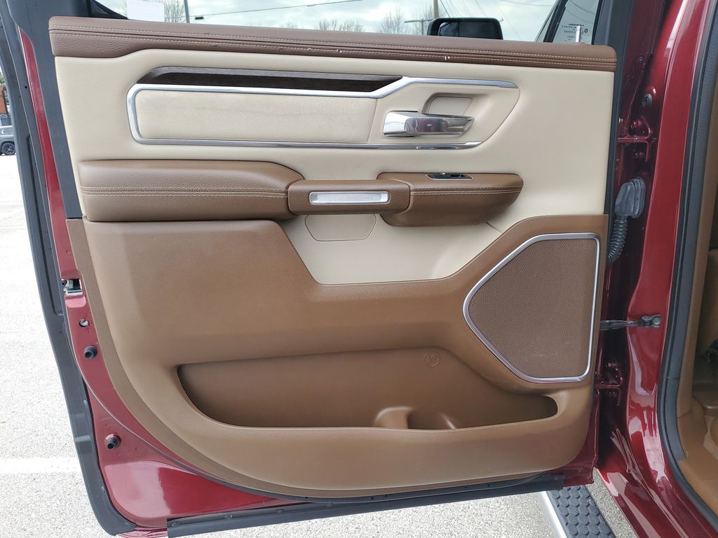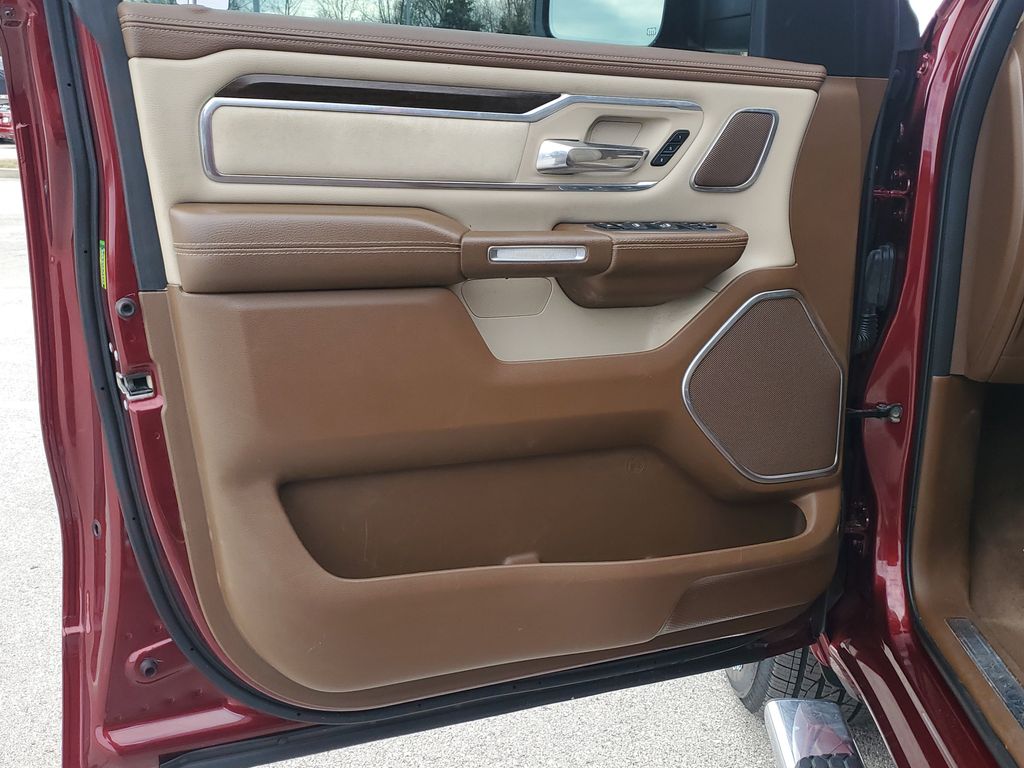 This Laramie model also boasts a stunning Delmonico Red Pearlcoat exterior, complemented by the stylish chrome accents and 18-inch aluminum wheels. Step inside and be captivated by the premium leather-trimmed interior, with heated and ventilated front seats and a spacious rear bench that offers ample room for passengers and cargo.